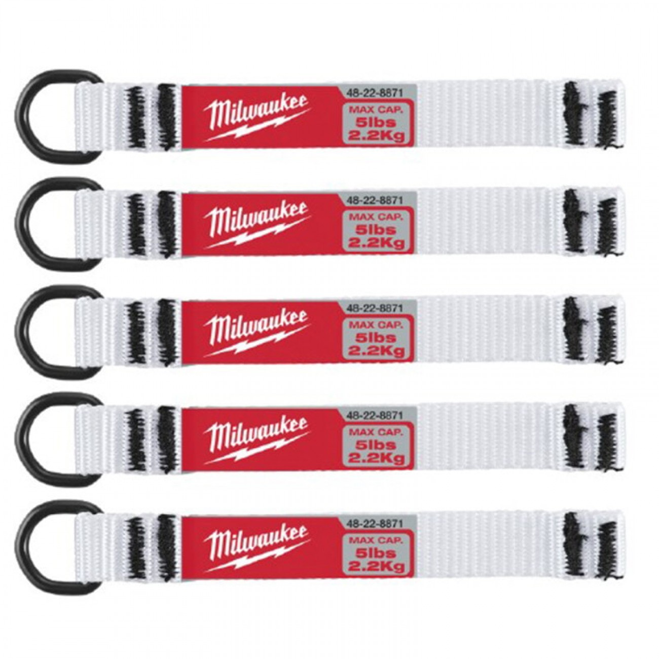 Комплект постачання: Кільце D-подібне Milwaukee з брелоком для кріплення за допомогою самоклеючої стрічки - 5 шт.