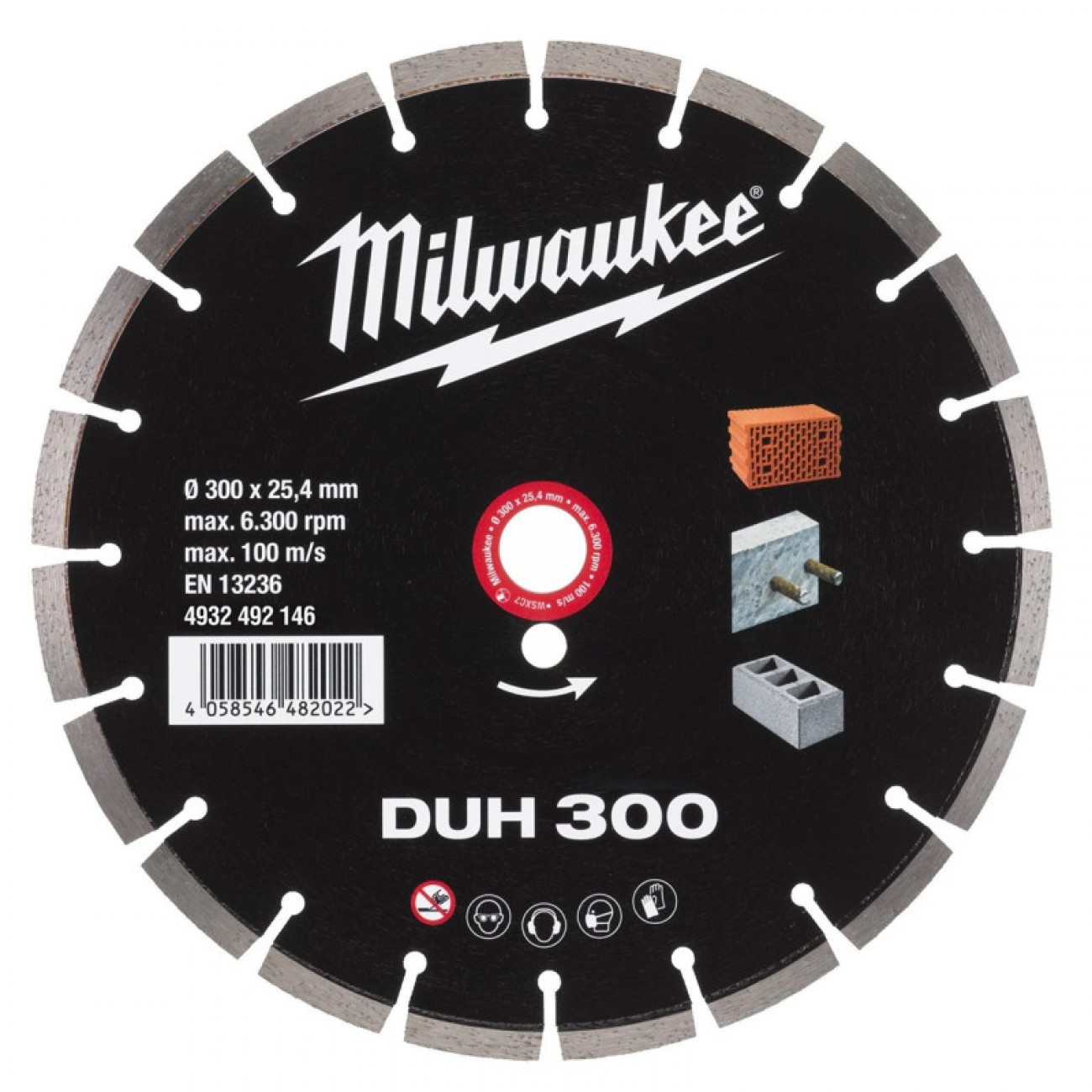 Основні характеристикиДиск алмазный MILWAUKEE DUH 300, Ø300мм (железобетон, кирпич)