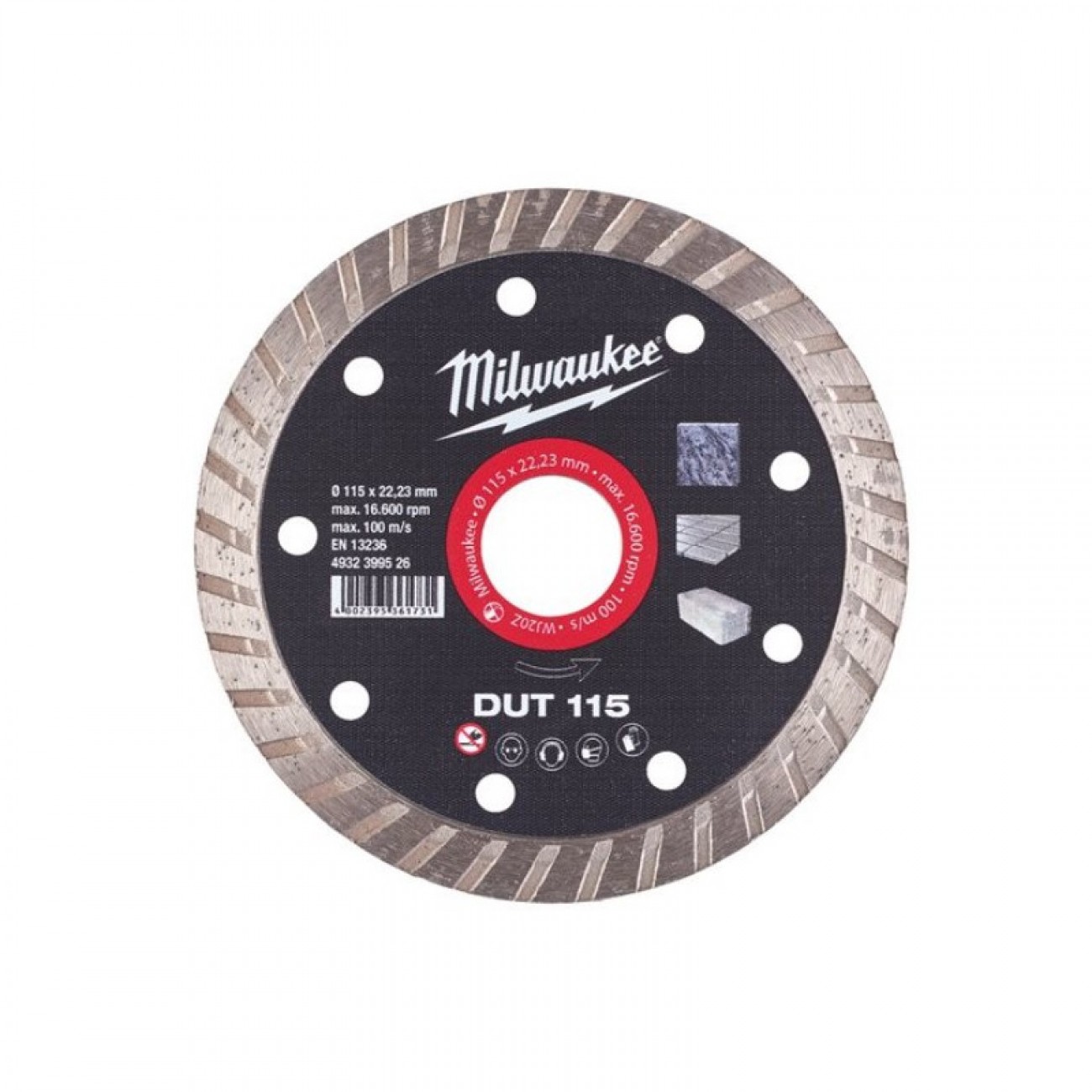 Основні характеристикиДиск алмазный MILWAUKEE DUT 115, Ø115мм (керамическая плитка/чистый рез)