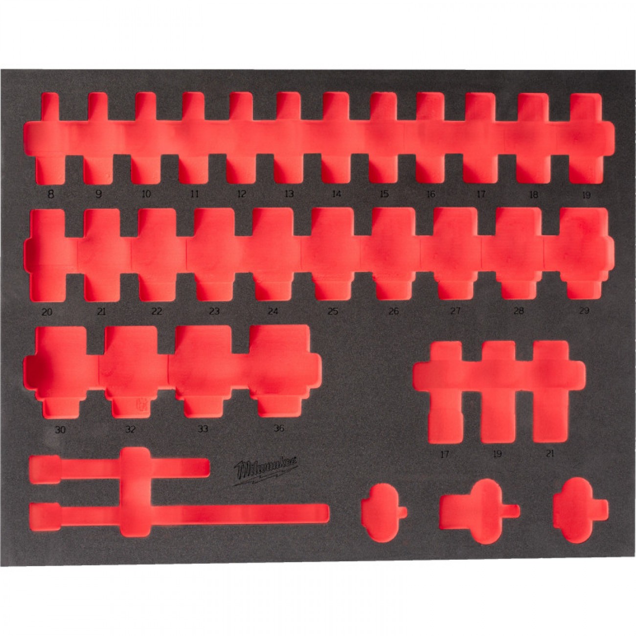 Опис Ложемент для головок удлиненных ShW 1/2\" SKT MILWAUKEE, (34шт) (45х536х417мм) для тележек