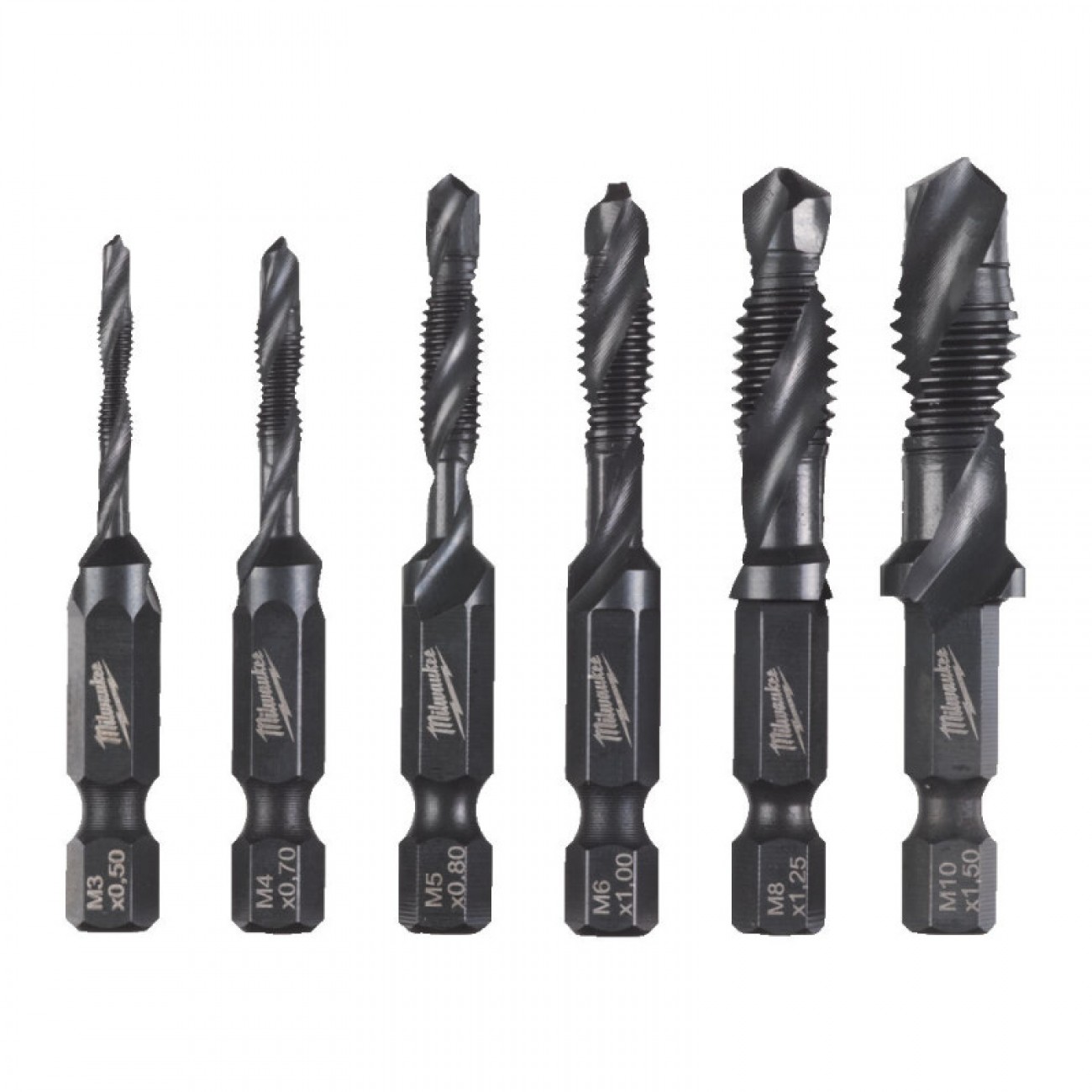 Основні характеристикиНабір мітчиків-свердлів М3-М10 HSS-G (6 предметів) MILWAUKEE