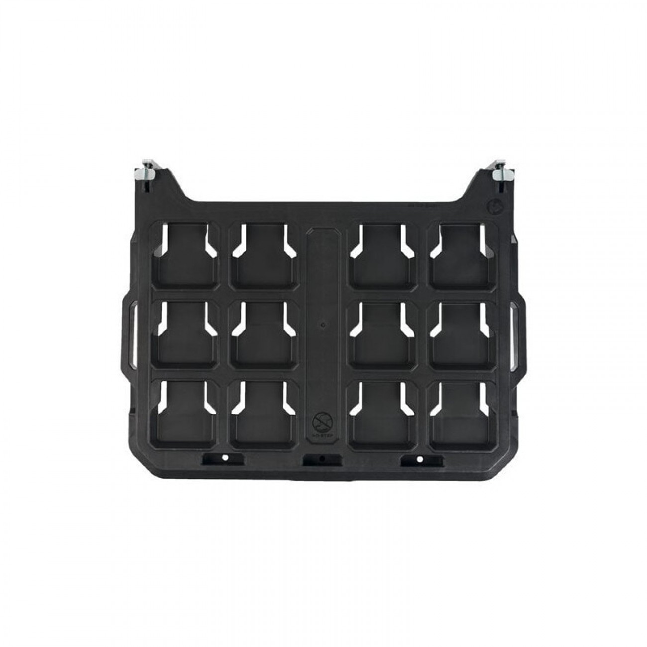 Монтажні профілі E-Track можна закріпити на стіні в транспортних засобах, магазинах або гаражах, максимальна універсальність. Швидкороз'ємна конструкція для легкого монтажу, регулювання висоти та зняття полиць. Кожна полиця витримує навантаження до 22 кг. Посилені металом кути. Конструкція з ударостійких полімерів. Частина модульної системи зберігання PACKOUT™.