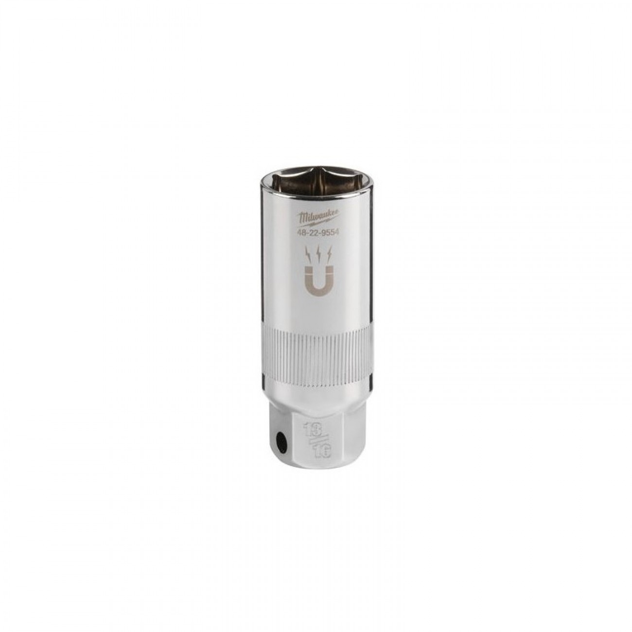 Головка хромированная с магнитом 3/8'' MILWAUKEE, для свечек зажигания, 20,8мм