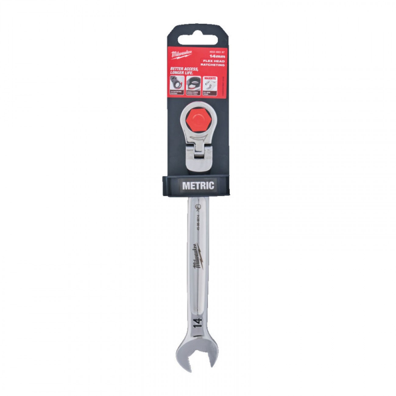 Основные характеристикиКлюч рожково-накидний MAX BITE MILWAUKEE с трещеткой и шарниром, 14мм