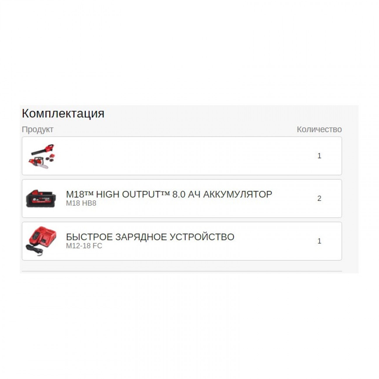 Основные характеристикиКомбинированный садовый комплект M18 FPP2OP2-802 MILWAUKEE