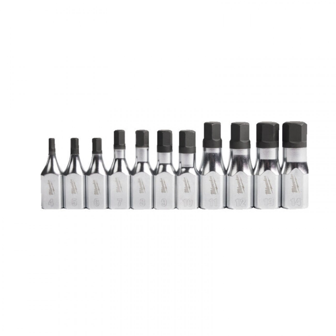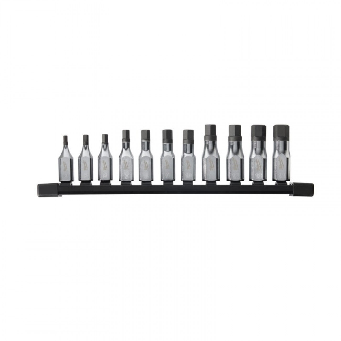 Головка Milwaukee 3/8'' 4 мм HEX (Арт. 4932480831) - 1 шт.Головка Milwaukee 3/8'' 5 мм HEX (Арт. 4932480832) - 1 шт.Головка Milwaukee 3/8'' 6 мм HEX (Арт. 4932480833) - 1 шт.Головка Milwaukee 3/8'' 7 мм HEX (Арт. 4932480834) - 1 шт.Головка Milwaukee 3/8'' 8 мм HEX (Арт. 4932480835) - 1 шт.Головка Milwaukee 3/8'' 9 мм HEX (Арт. 4932480836) - 1 шт.Головка Milwaukee 3/8'' 10 мм HEX (Арт. 4932480837) - 1 шт.Головка Milwaukee 3/8'' 11 мм HEX (Арт. 4932480838) - 1 шт.Головка Milwaukee 3/8'' 12 мм HEX (Арт. 4932480839) - 1 шт.Головка Milwaukee 3/8'' 13 мм HEX (Арт. 4932480840) - 1 шт.Головка Milwaukee 3/8'' 14 мм HEX (Арт. 4932480841) - 1 шт.Поставляется с планкой для хранения