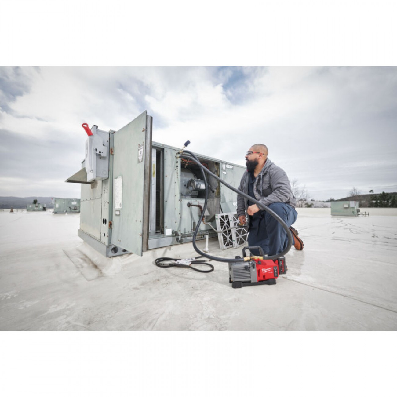 Здатний вакуумувати всі системи, що містять холодоагенти класів A1 та A2L.