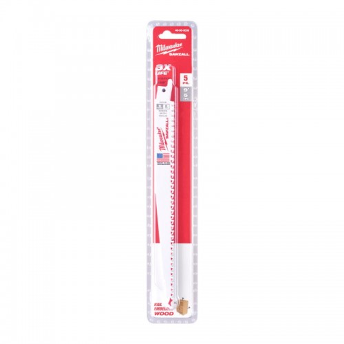 Полотно для сабельных пил THIN KERF FANG TIP MILWAUKEE, 300х5,0мм, (5шт), (дерево с гвоздями)