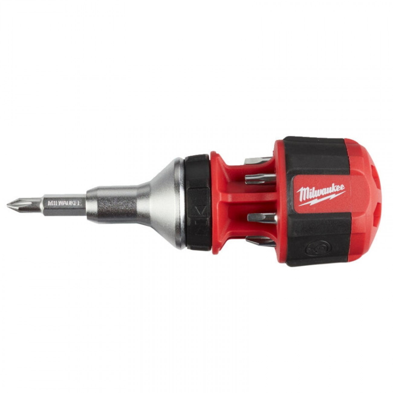 Описание Отвертка универсальная короткая с трещоткой 8 в 1 MILWAUKEE