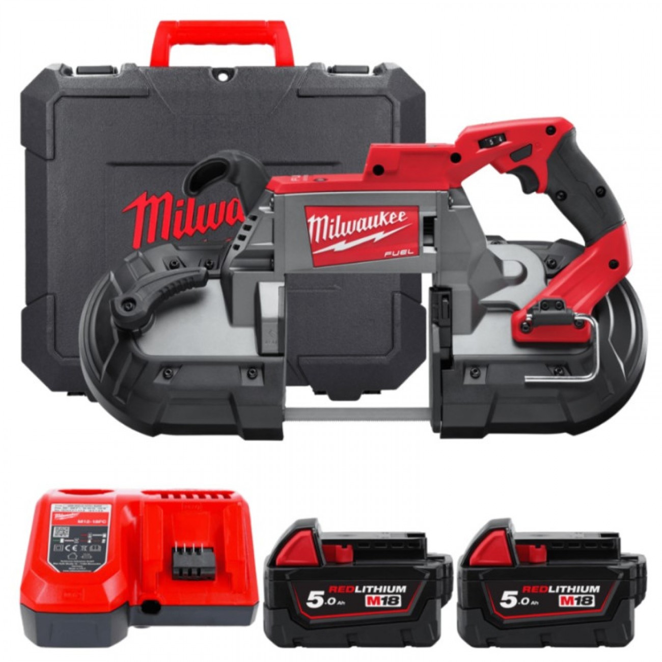 Бесщеточный двигатель POWERSTATE; поддержание постоянных оборотов; скорость 0-116 об/мин; макс сечение реза 125мм; полотно 1140 мм; LED-подсветка; 2 аккумулятора; турбо з/у M12-18 FC; вес 7,3; кейс
