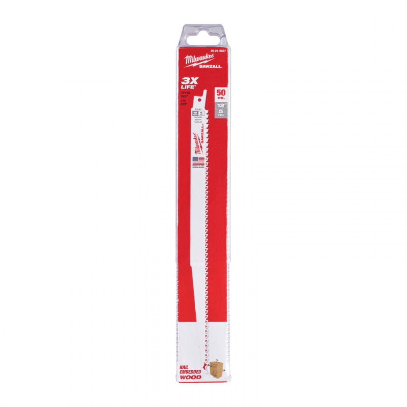 Полотно для сабельных пил FANG TIP THIN KERF MILWAUKEE, 300х5,0мм, (50шт), (дерево с гвоздями)