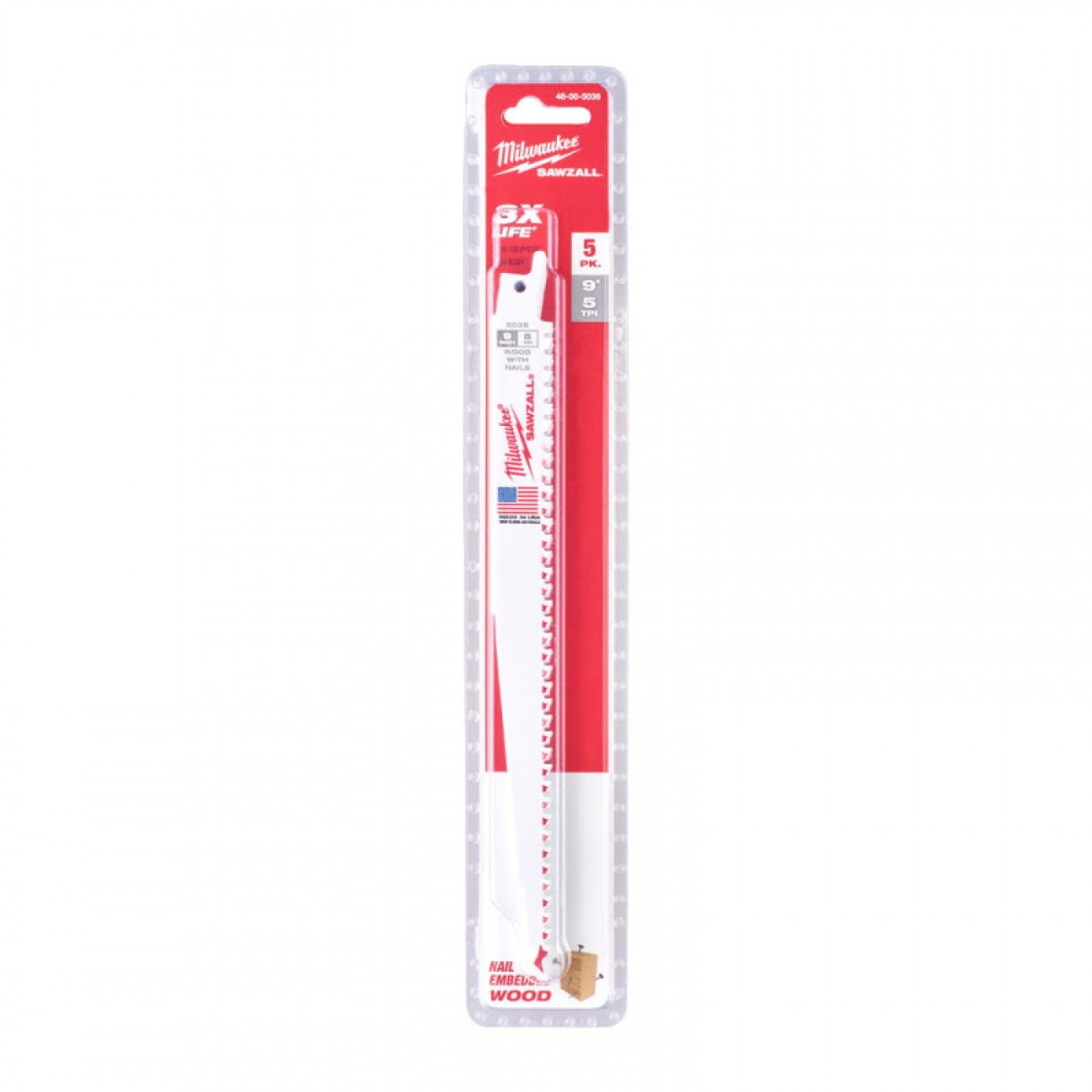 Полотно для сабельных пил THIN KERF FANG TIP MILWAUKEE, 230х5,0мм, (5шт), (дерево с гвоздями)