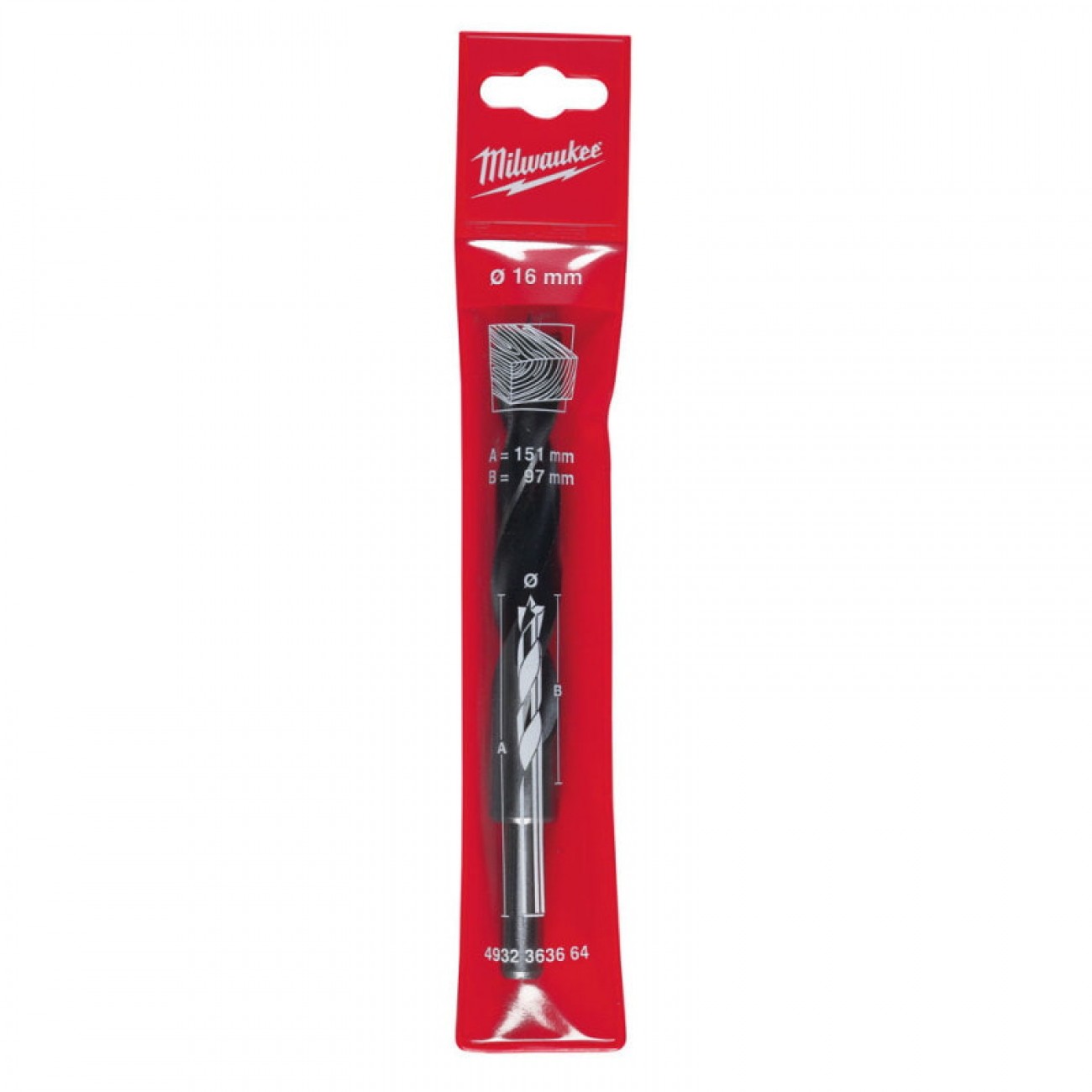 Описание Сверло по дереву трехточечное DIN 7487 E MILWAUKEE, Ø16х151х97мм
