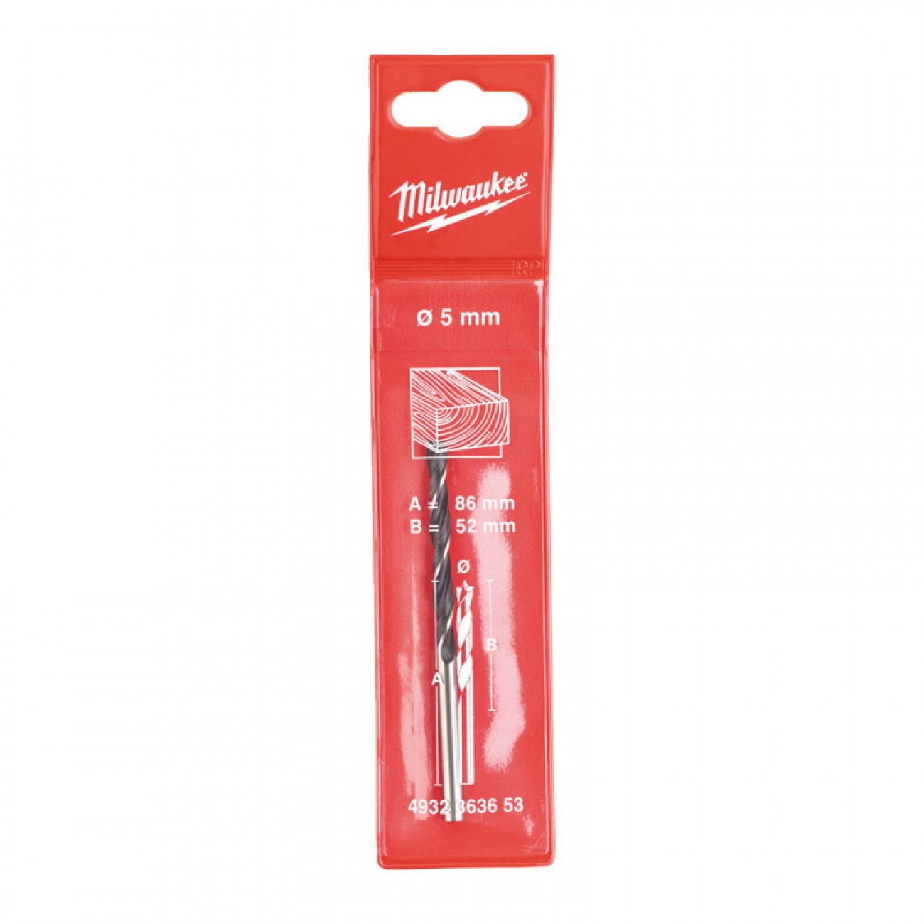 Описание Сверло по дереву трехточечное DIN 7487 E MILWAUKEE, Ø5х86х52мм