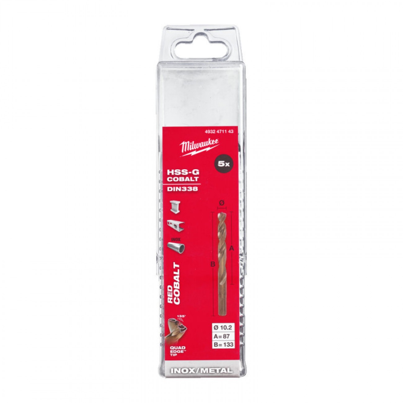 Сверло по металлу HSS-Co MILWAUKEE, DIN338, Ø10,2х133х87мм, (5шт)